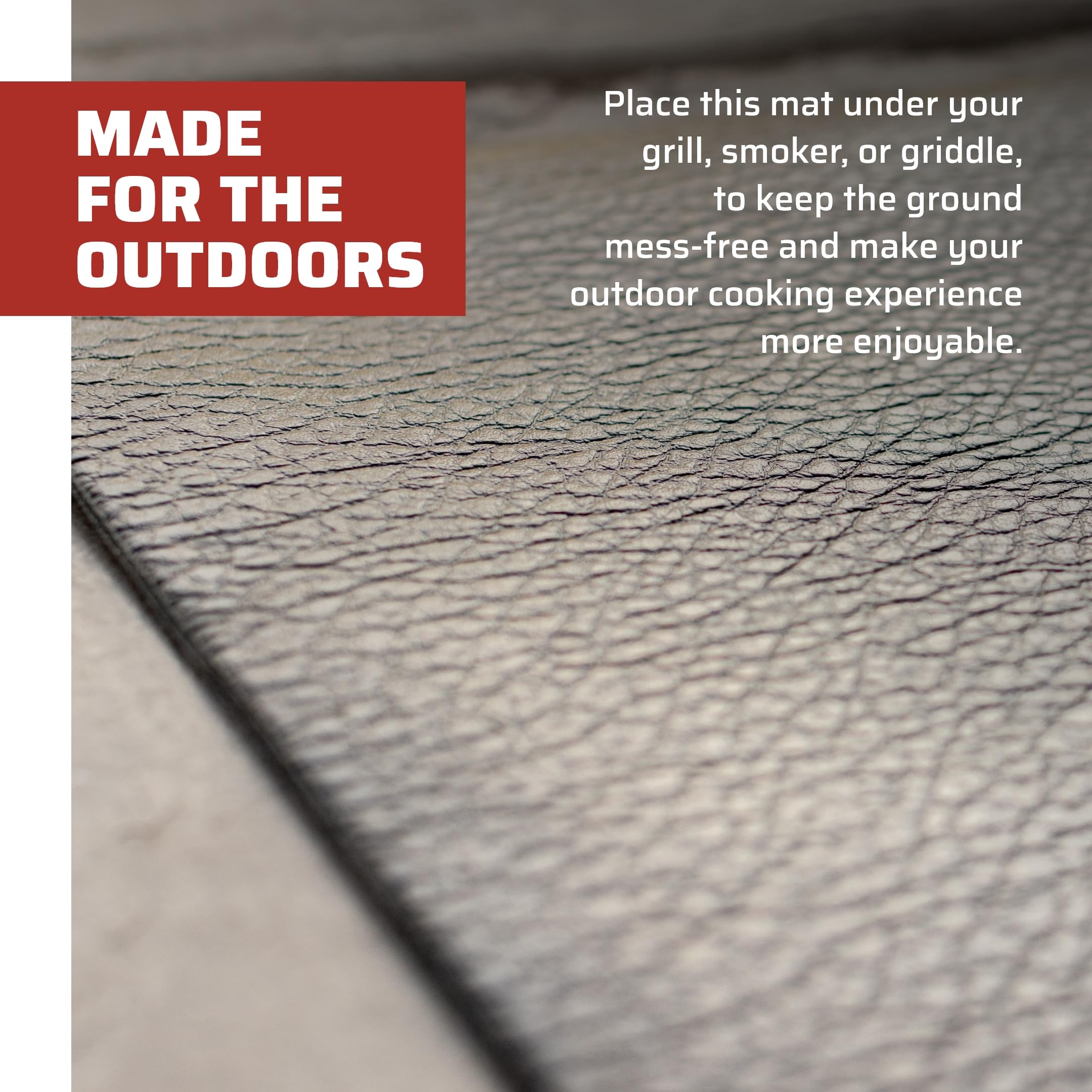 - Under-Grill Mat: This mat can be placed under your grill, smoker, griddle, and more to make your outdoor cooking experience more enjoyable